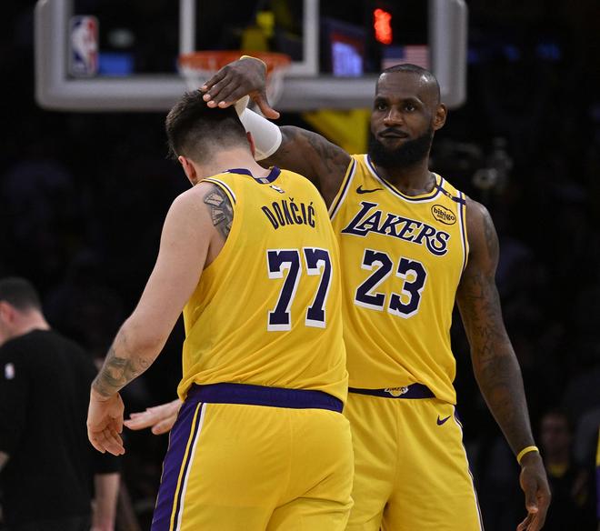 本场比赛,湖人核心东契奇砍下40分9篮板10助攻的准三双数据,詹姆斯砍下30分5篮板的数据,不过投篮14中13非常高效。