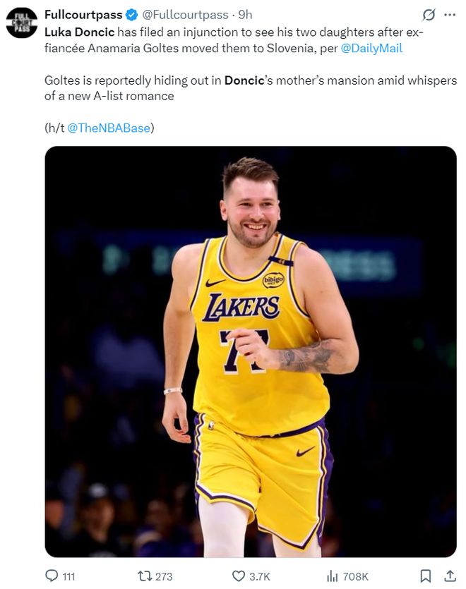 赛前又传来了东契奇的噩耗,他已经申请强制执行令来探望他的两个女儿,因为他的未婚妻戈尔特斯将她们带回了斯洛文尼亚,目前戈尔特斯正躲藏在东契奇母亲的豪宅里,同时有传言称他与某位明星绯闻缠身。(悲伤体育生愈发的凄凉)
