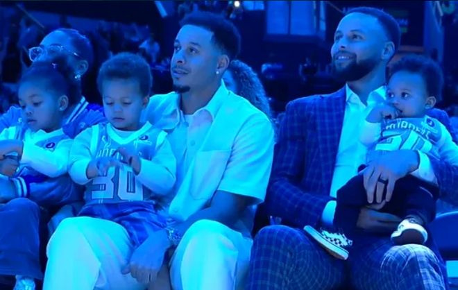 如今黄蜂主场为戴尔-库里举办30号球衣退役仪式,库里全家人到场见证父亲的荣耀时刻,见证30号球衣冉冉升空,并且全家一起合影留念。