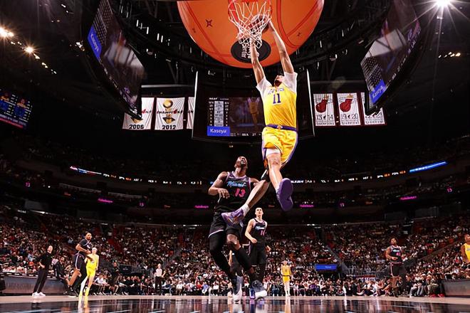 在此前的一场NBA常规赛中,洛杉矶湖人以134比126战胜了主场作战的迈阿密热火。本场比赛后,豪取8连胜的湖人的战绩提升到了45胜25负,继续排名西部第3位,与身前的圣安东尼奥马刺的胜场差为7场,与身后的明尼苏达森林狼的胜场差为两场;而遭遇了3连败的热火的战绩则是下滑到了38胜32负,继续排名东部第8位,与身前的奥兰多魔术的胜场差为半场,与身后的费城76人的胜场差为半场。