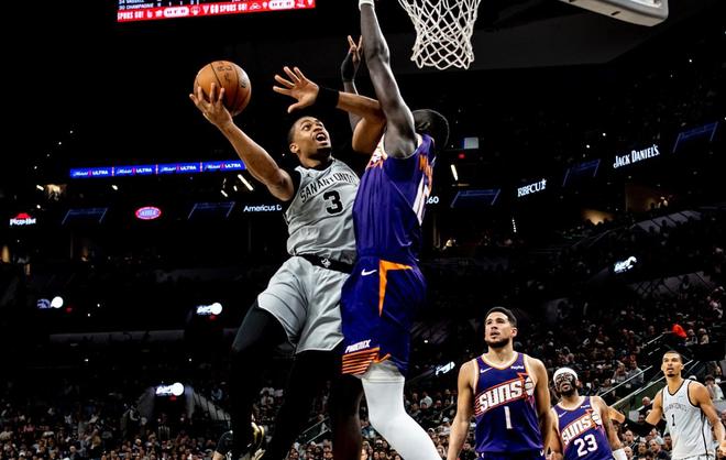和其他球队包括雷霆相比,马刺的天赋更好,他们不仅有文班亚马这个BUG级别的篮球怪兽,还有卡斯尔,哈珀,这些顺位相当靠前的年轻球员,引进福克斯之后,马刺又多了一位绝对核心,福克斯和文班亚马的双人组完全能够互补,虽然福克斯作为一名大器晚成的球星,职业生涯到现在的个人荣誉并不多,但他的带队经验也算很丰富了,有过季后赛履历,在球场上具备大心脏属性,擅长打关键球,很显然他是一位实力大于名气的球员。此外,马刺还有瓦塞尔,凯尔登约翰逊,尚帕尼,这些拥有一定得分能力的角色球员,全队8人场均得分都上双。