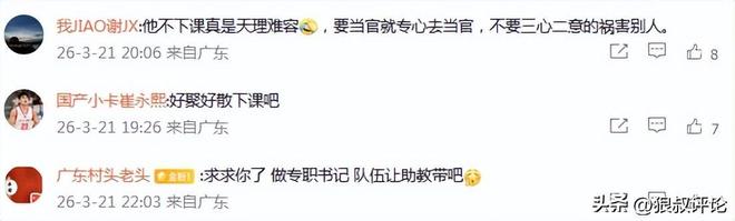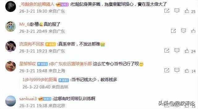 但“粤BA”的开幕式,刚刚打完江苏客场的杜锋,并没有跟队前往上海,而是返回广东引发不少球迷的热议。认为他身兼多职,是否真能完全兼顾下来引发争议。