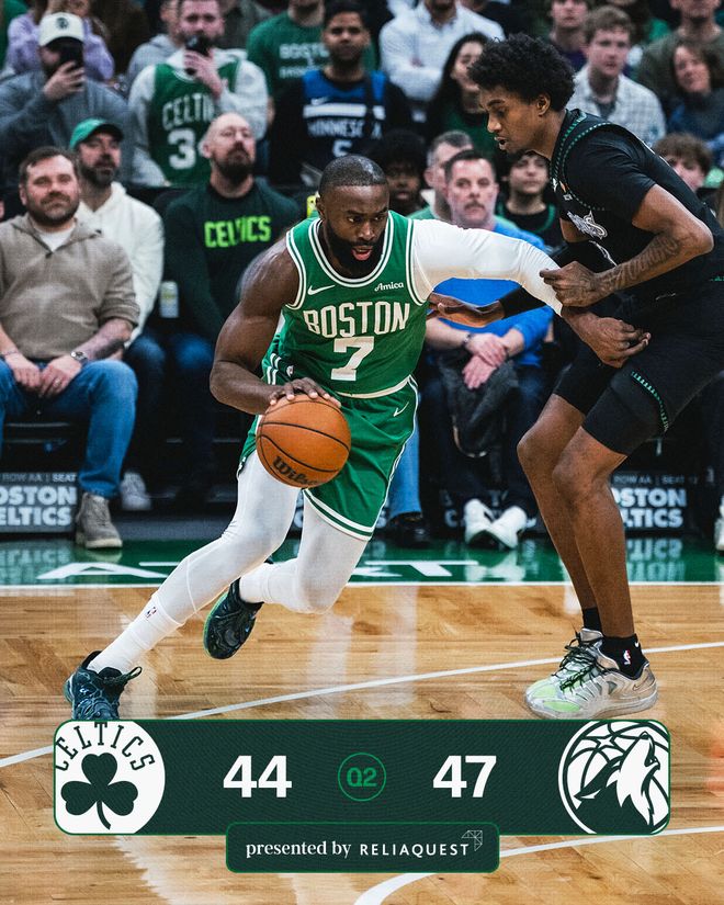森林狼队的海兰德得到23分,麦克丹尼尔斯得到19分、5个篮板和3次助攻,多苏姆得到17分、8个篮板和6次助攻,里德得到11分和7个篮板,戈贝尔得到9分和14个篮板,兰德尔得到9分和10个篮板。凯尔特人队的布朗得到29分、7个篮板和4次助攻,塔图姆得到16分和11个篮板,怀特得到15分和6个篮板,普理查德得到10分,奎塔得到4分和10个篮板。