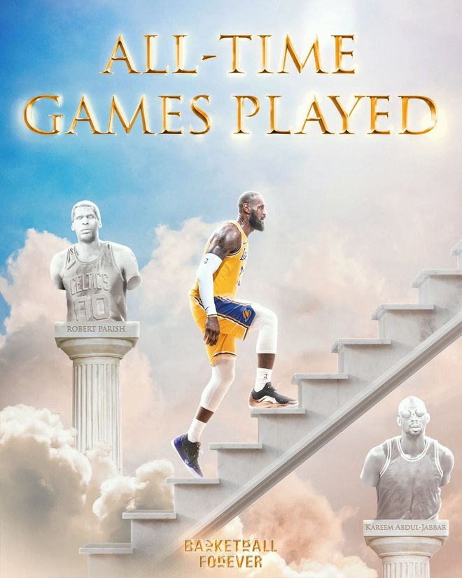 勒布朗-詹姆斯在对阵魔术的比赛中成为历史出场王(1612场)超越帕里什(1611场),这场比赛勒布朗拿到12分6篮板4助攻3抢断,虽然没有对阵此前的5场那么高效,可他依旧是湖人赢球的功臣之一。