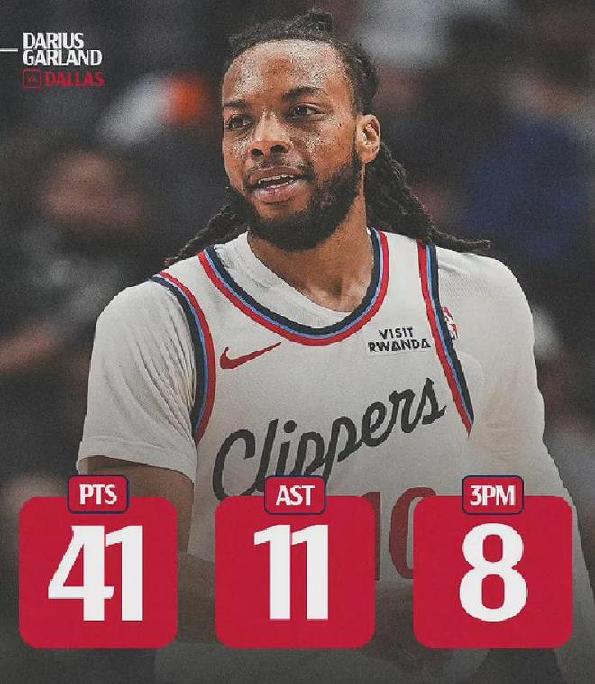 至此,加兰德成为快船史上首位单场比赛至少40分10助攻同时命中7个以上三分球的球员。