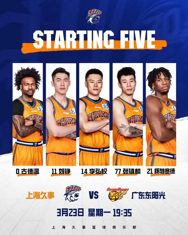 本场比赛,上海男篮派出张镇麟、李弘权、刘铮和双外援古德温、怀特塞德的先发阵容。开场后,张镇麟手感火热,里突外投连得8分,率队打出15比6的小高潮,广东队被迫暂停。此后,两队轮番调兵遣将,主队凭借防守反击将分差扩大至22比9,并在首节以28比21领先。