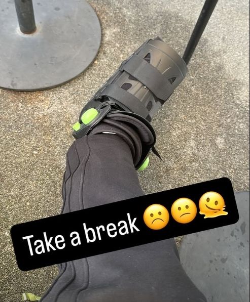 如今郭昊文通过社媒晒出自己的情况,他晒出右脚穿上保护靴的照片,他现在是脚部肿起来了,需要穿上保护靴防止二次受伤。