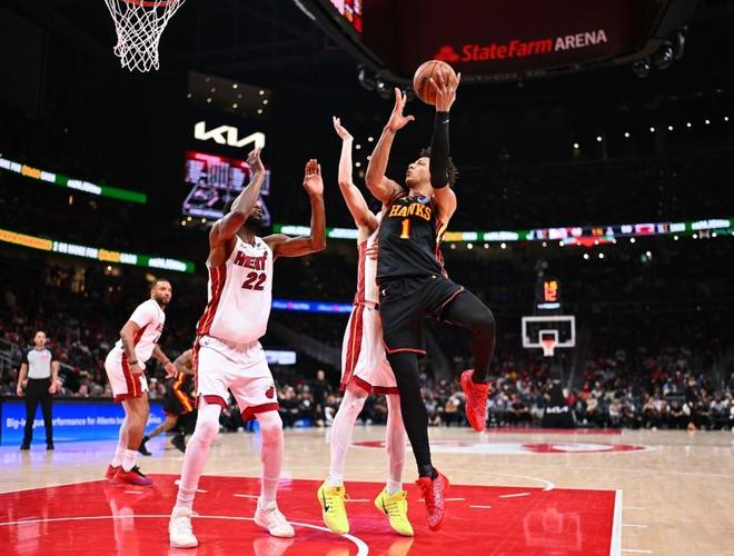 老鹰上一场客场117-107战胜76人,热火上一场客场123-111战胜鹈鹕,本赛季前两次交锋双方各取一胜。本场老鹰缺少库明加,热火缺少罗齐尔,希罗复出替补登场。首节热火用出色的攻防表现碾压老鹰,首节热火27中13,其中三分9中3,阿德巴约8分与希罗7分。热火限制老鹰24中7打铁,其中三分8中1,杰伦7中2仅得到4+8+2,首节结束热火29-16领先老鹰13分优势。