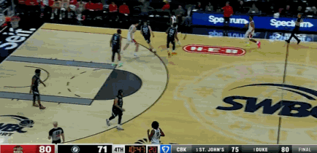 第三节上来,杨瀚森在三分线外佯攻,一个突破接换手,用左手完成了一次潇洒的拉杆上篮,吹响了他的进攻号角。