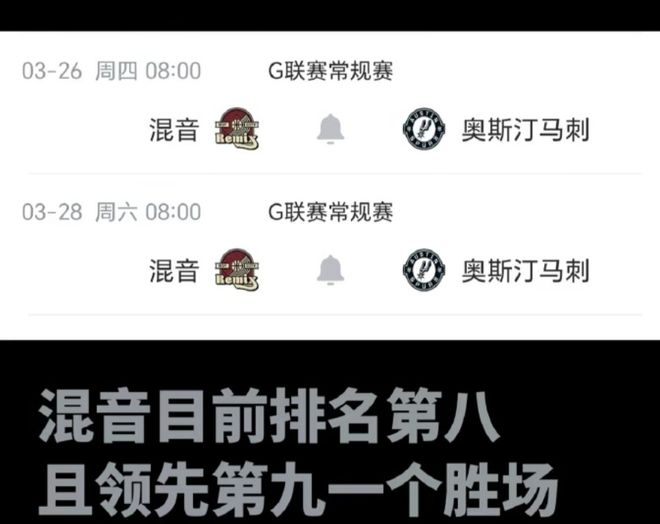 混音的季后赛席位主要竞争对手是圣迭戈快船,在今天稍晚的比赛里,如果快船输给斯托克顿国王,那么混音就确定打进季后赛。
