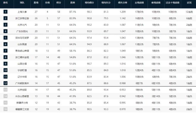 CBA最新排名出炉!北京杀进前三,辽宁跌入谷底,黑马逼停广东