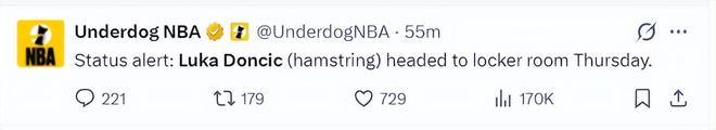 根据美媒FDM的说法,伤病消息,湖人球星东契奇因为左腿筋拉伤退场,看起来情况停糟糕,这至少会被判定轻微拉伤可能需要4周的康复时间,并且是四周后重新评估。(东契奇这次的伤势还会影响他评奖,他还差1场才打满65场)