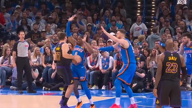 东契奇伤退!湖人96-139惨败雷霆,詹姆斯砍13+6+2,里夫斯15+4+1