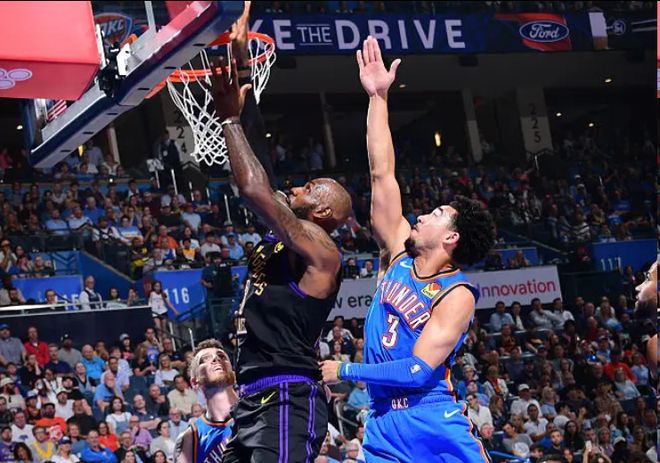 第六,湖人首节罚球10-3雷霆,但落后雷霆23分之多。