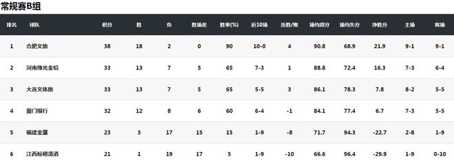 至于B组前4名球队均至少12胜,B组第一的合肥女篮18胜2负,而B组后两名的福建女篮仅3胜17负,江西女篮低至1胜19负。