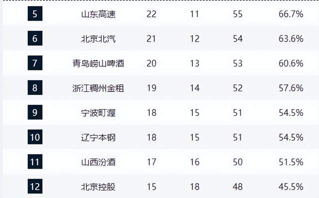 上海拉开差距,广厦掉队,广东第3,黑马第4,山东下滑,辽宁第10