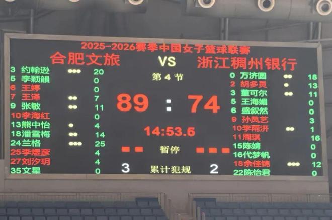 2026年4月5日,2025-2026赛季WCBA联赛季后赛排位赛第四场,浙江稠州银行客场对阵合肥文旅。此役上半场进攻效率不佳,下半场找回手感,末节连续命中投篮,单节得到32分,可惜为时已晚。全队五人得分上双,浙江稠州银行74-89不敌合肥文旅,结束本赛季征程。