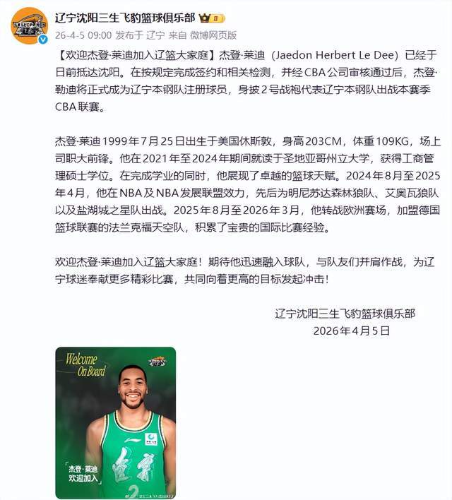 莱迪的加入,意味着辽宁队本赛季阵容彻底定型:双外援内线+双外援后卫的“2+2”配置成型,兼顾攻防平衡与阵容深度。球队正全力备战季后赛,莱迪能否快速融入体系,将成为冲击总冠军的重要变量。