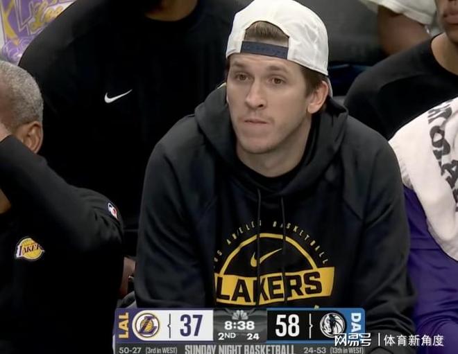 次节再战,独行侠延续强势,连得7分,湖人再度请求暂停。此时,湖人场上的阵容为詹姆斯、巴夫金、范德彪、克勒贝尔与海斯,面对独行侠的攻势,显得颇为吃力。弗拉格再中三分,湖人落后分差扩大至20分以上。海斯两罚全中,詹姆斯单打命中,但湖人内线空间过于狭小,双方陷入胶着状态,湖人却难以有效遏制独行侠的进攻。镜头扫过替补席,里夫斯的面容出现在画面中,湖人上下无疑十分想念他的组织能力。