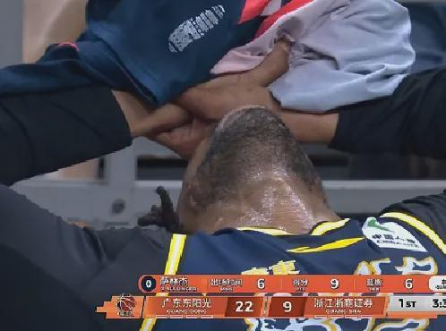 No!膝盖受伤倒下!这可是广东队的得分王