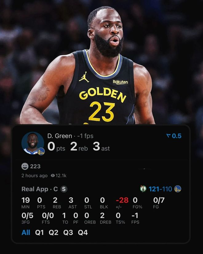 这话说出来的时候,追梦格林刚在上一场对阵凯尔特人的比赛里,首发出战18分33秒,7投0中怒砍0分,正负值-28全场最低。数据栏里除了2个篮板3次助攻,干干净净。