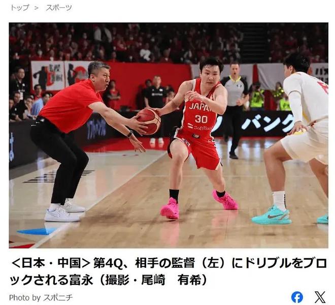 该媒体在发布相关报道时,特意将郭士强“抢断”日本球员富永启生的照片作为新闻封面,配文称“第四节比赛中,富永启生在突破过程中遭到中国主教练拦截”,文中详细描述了这一行为,并以此为由指责中国男篮的胜利不够光彩。据悉,富永启生在本场比赛中贡献14分,是日本队的核心球员之一,而郭士强的这次拦截行为,发生在比赛第四节的拉锯阶段。