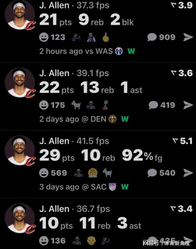 自从哈登加盟骑士后,阿伦这打法就像变了个人似的。本赛季2月份之前,阿伦场均还不到15分,看起来就是个普普通通的首发内线,可现在呢,直接“脱胎换骨”,成了球队的“内线大杀器”,哈登这“魔力”可真是不小啊!哈登一入队,阿伦就跟开了挂似的!前7场比赛,他场均得分“嗖”地一下窜过了20.4分大关,命中率更是高得吓人,达到了75%,而且还有11.3个篮板稳稳收入囊中,这简直就是内线小霸王啊!