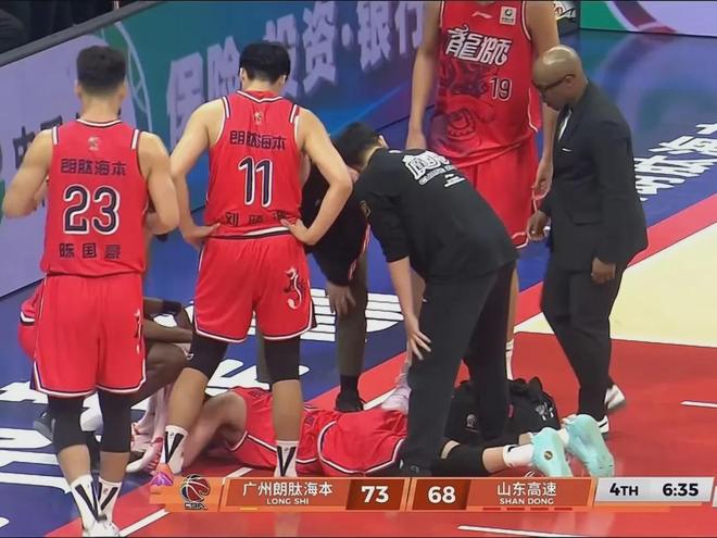 近日结束的广州队主场93-85击败山东队比赛,此役进行到末节时,郭艾伦持球快攻反击对抗后受伤倒地,直接被担架抬出场外治疗。