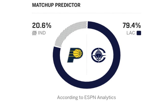 反观客场作战的步行者,本赛季以短暂重建为目标,本赛季战绩15胜46负,近期更是遭遇6连败,排名东部垫底。在106—125不敌魔术后,步行者以全败战绩结束四连主赛程。对阵魔术一役,贾雷斯・沃克砍下21分成为步行者队的唯一亮点,其他球员的表现则不尽如人意。本赛季明确摆烂的他们,正持续肆无忌惮地俯冲状元签。面对即战力缺乏与战意不足的步行者,正全力赶超勇士的快船,自然不会错过这个轻松取胜的机会。美媒ESPN预测本场比赛的胜率,快船取胜概率高达79.4%,步行者胜率低至20.6%。