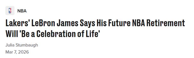 北京时间3月7日,湖人球星勒布朗-詹姆斯显然已经开始思考,在自己41岁这个赛季的尾声,他希望以怎样的方式结束NBA生涯。