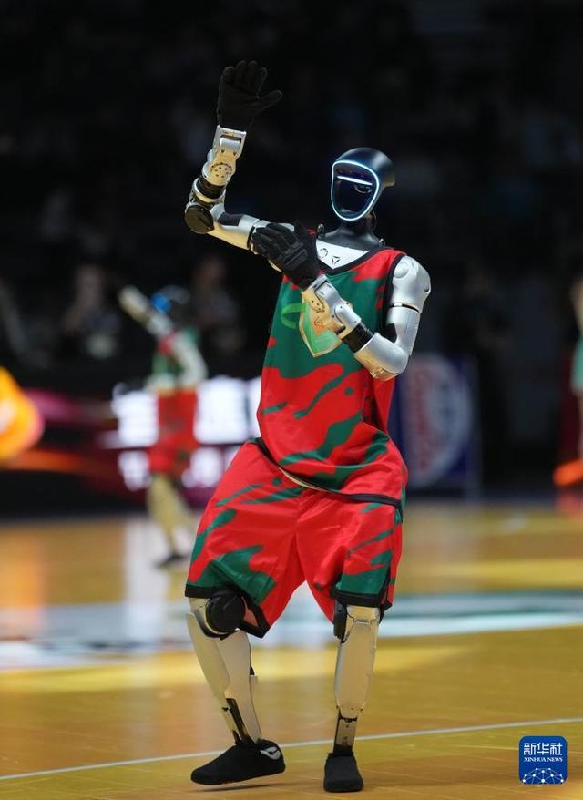 3月7日,人形机器人在比赛间隙表演。新华社记者 孟永民 摄