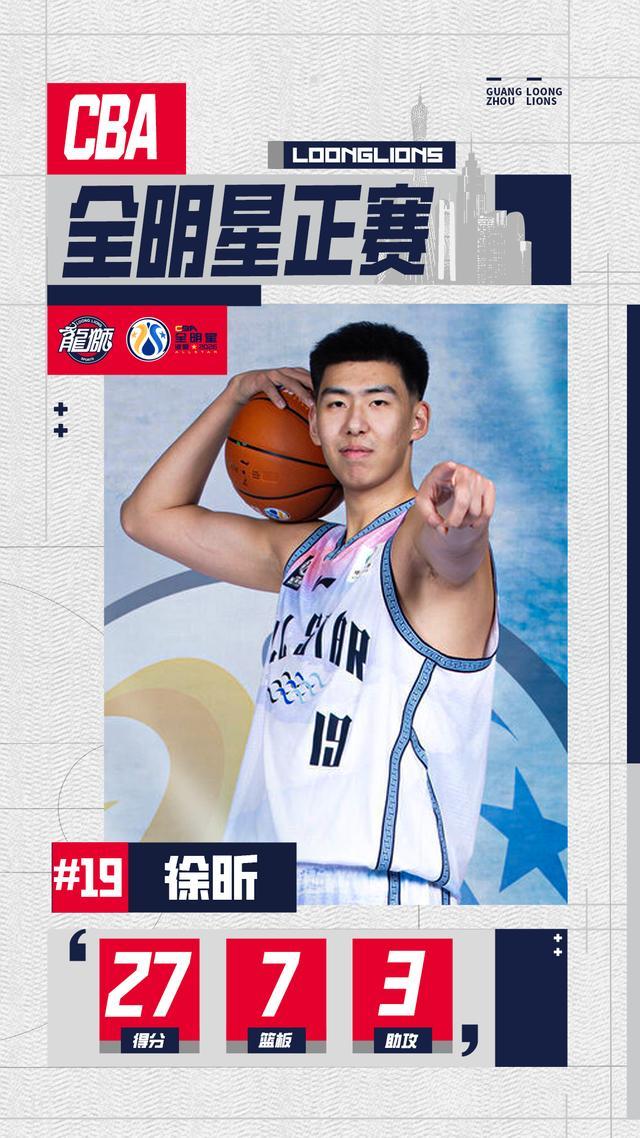 徐昕替补出战全明星正赛,拿下27分7篮板3助攻,17投13中,效率惊人!帮助南区明星队击败北区,首次全明星之旅即闪耀全场!