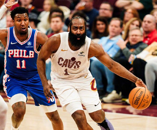 而等到哈登加盟,最大受益者就是阿伦,整个2月份,阿伦场均22.3分11.5篮板,真实命中率74.5%;做个对比,1月份阿伦场均只有12.3分8.1篮板,真实命中率65%。还有米切尔,最意外的是,哈登的到来没稀释米切尔球权(1月份球权占有率32.8%,2月份到34.1%),反而让米切尔面对包夹的占比,降低接近30%,米切尔更轻松了,出场时间也可以控制一下,2月份场均净效率值+9.0。简单来说,骑士因为哈登的到来,提高了球队整体下限。哈登代表骑士出战的11场比赛,球队9胜2负。其中哈登BPM值4.4,仅次于米切尔的5.6。