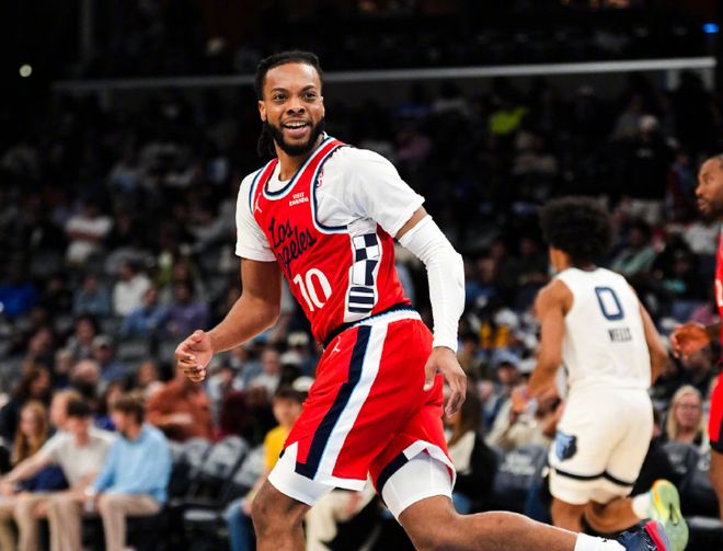 再来聊聊快船。自从官宣被送到快船后,加兰先养伤休战1个月,那段时间快船非常挣扎,伦纳德身边缺持球点,对方双人夹击,在三分线内三人围堵是常态。而加兰复出首战打勇士,12分2助攻5失误,全是批评指责声。第二场大胜步行者,加兰12分4篮板8助攻,带衔接段全队速度太快了;打灰熊时首发,21分6助攻;打尼克斯时首发,23分7助攻。加兰出战的比赛,快船4胜0负,其中加兰在场时,球队赢55分;反之则输8分。一个1米85缺乏对抗能力的小后卫,是怎么帮助小卡和快船走上正轨的?