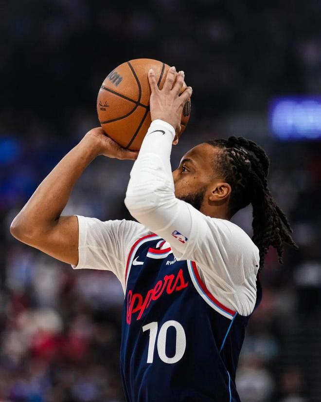 新援加兰打了4场,快船4胜0负,他总正负值+55。今天16中7,三分9中5,23分7助攻。