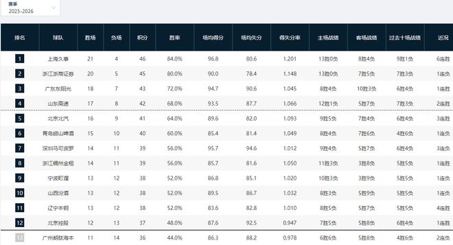 CBA排名大变天!上海6连胜稳居第一,山东复仇青岛,北京力争前四