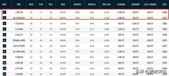 CBA排名大变天!上海6连胜稳居第一,山东复仇青岛,北京力争前四