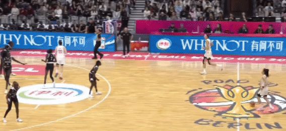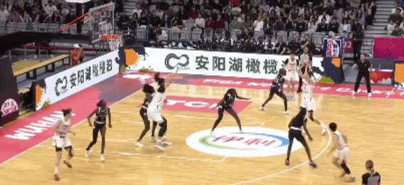 进入到第四节:中国队换上双塔组合:张子宇打5号位,韩旭4号位,罗欣棫3号位,杨舒予和王佳琦打后卫。——张子宇、韩旭二人连续拿分:中国队持续保持冲击力。