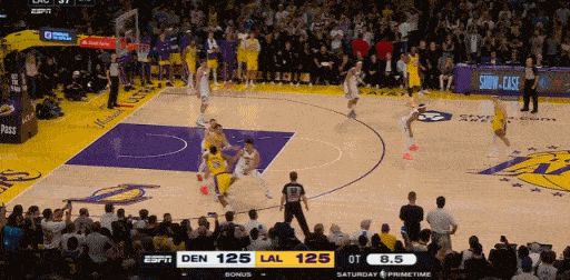 加时赛,最后125平,东契奇右侧突破中投命中0.5秒准绝杀,他来湖人最精彩的比赛。