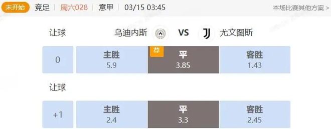 竞足 周六028 意甲 乌迪内斯VS尤文图斯