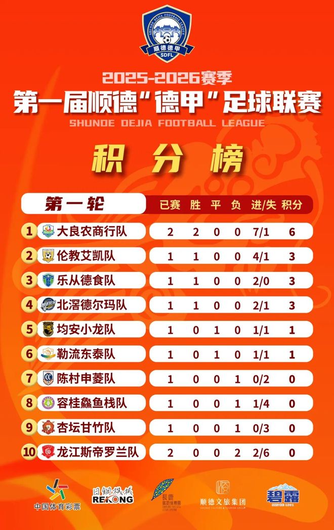 威水!顺德“德甲”循环赛第一轮积分榜、射手榜来了