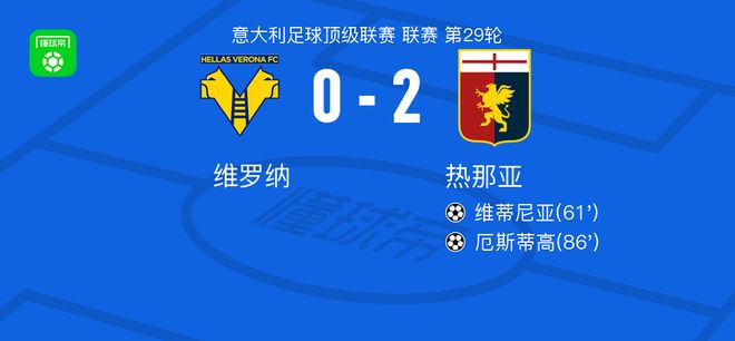 热那亚2-0维罗纳,维蒂尼亚建功,厄斯蒂高锦上添花