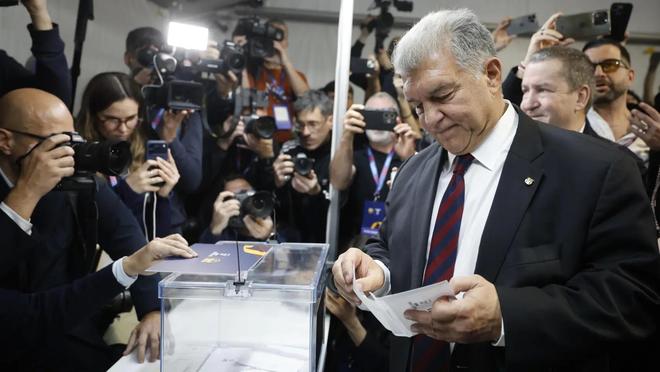 一线队所有球员都向胡安-拉波尔塔表达了支持。拉波尔塔逐一拥抱他们,并与众人一起高喊“Barça, Barça, Barça”。庆祝结束后,球员们离开投票地点,拉波尔塔则跟在他们身后。就在他准备离开帐篷时,一名支持维克托-丰特候选团队的人拦住了他。