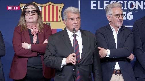 随后,巴塞罗那董事会秘书何塞普-库贝尔斯正式宣布拉波尔塔在未来五年继续担任俱乐部主席。在诺坎普的1899礼堂内,拉波尔塔在其竞选团队成员以及将组成新董事会的成员陪同下发表讲话,表达了对再次胜选的喜悦。