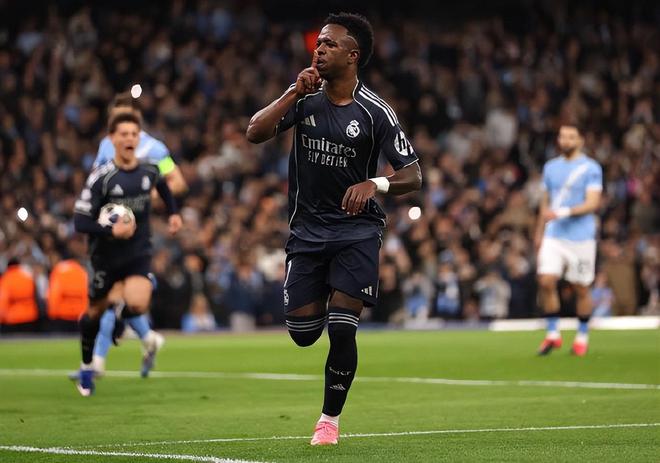 第68分钟,姆巴佩伤愈复出替补出场换下了迪亚斯;第73分钟,谢尔基弧顶处前沿也来了一脚远射,皮球是滑门而过;第77分钟,谢尔基禁区前沿挑传,努里门前高高跃起头槌破门,但还是处在明显越位位置进球无效。第81分钟,卡马文加往前传递,维尼修斯单刀推射被多纳鲁马挡出,巴尔韦德连补2脚入网,同样是因为越位无效。第93分钟,楚阿梅尼右侧传中,维尼修斯抢点垫射上演梅开二度的同时彻底终结比赛悬念;最终皇马2:1双杀曼城,两回合总比分5:1淘汰曼城拿到欧冠8强席位。