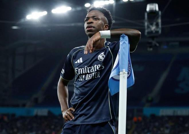 维尼修斯庆祝进球做出哭泣者动作,疑似回应曼城上赛季的Tifo