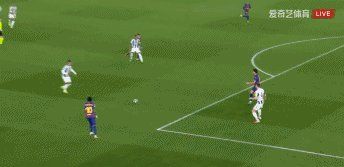 18’拉菲尼亚任意球吊入禁区,赫拉德·马丁头球摆渡,贝尔纳尔垫射得手,巴萨2比1。