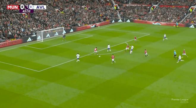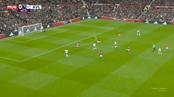 在曼联客场3-1击败阿斯顿维拉的比赛中,约罗全方位展现了身为顶级后卫的亮眼特质。上半场临近尾声阶段,维拉在中场中路完成断球反击,瞬间打破曼联中场控球节奏,迫使约罗与搭档哈里-马奎尔同步回撤落位。