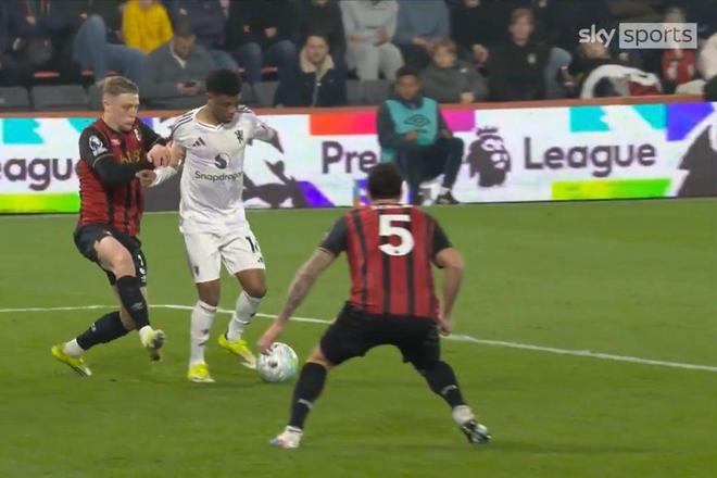 单纯判断曼联和伯恩茅斯所获的两粒点球,包括马奎尔的红牌,可以说都没有太大争议。但令曼联失望的是期间阿马德遇到的情况。科特迪瓦4000万欧元边锋遭受的疑似犯规动作,与库尼亚和埃瓦尼尔森面对的如出一辙,甚至可以说犯规幅度更大。