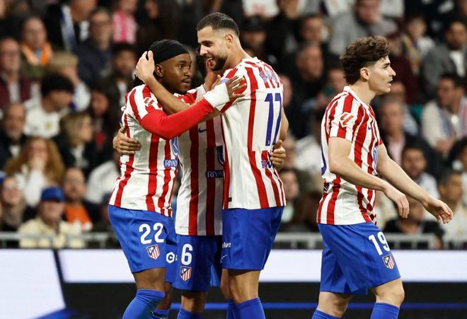 下半场易边再战,马竞率先进行换人调整,希门尼斯替补上场,换下勒诺尔芒。第51分钟,迪亚斯禁区内被踢倒。裁判判罚点球。维尼修斯主罚,他骗过门将,稳稳罚进,把比分追平了。只过了3分钟,皇马又进球了!希门尼斯致命失误。巴尔韦德断球后,单刀低射破门!皇马反超比分。真是不可思议!第61分钟,汉茨科犯规,被出示黄牌。